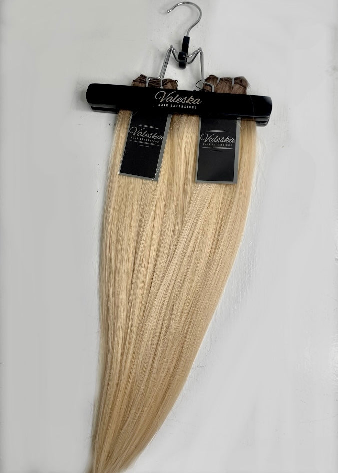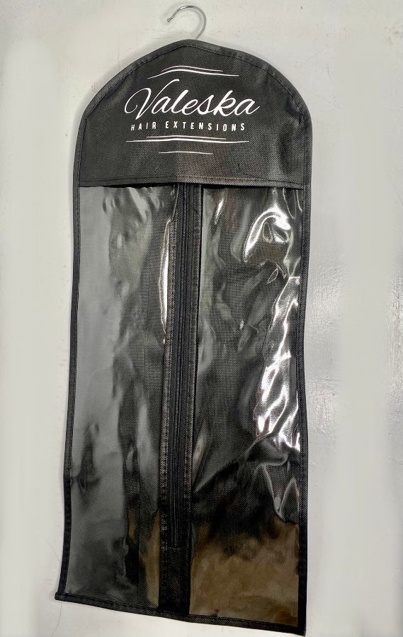 Valeska Hair hanger & storage carrier allows you to properly store your hair to improve the longevity of your human hair extensions. This kit is great for daily storage and travel. Can hold up to 24 inches. Hair not included.